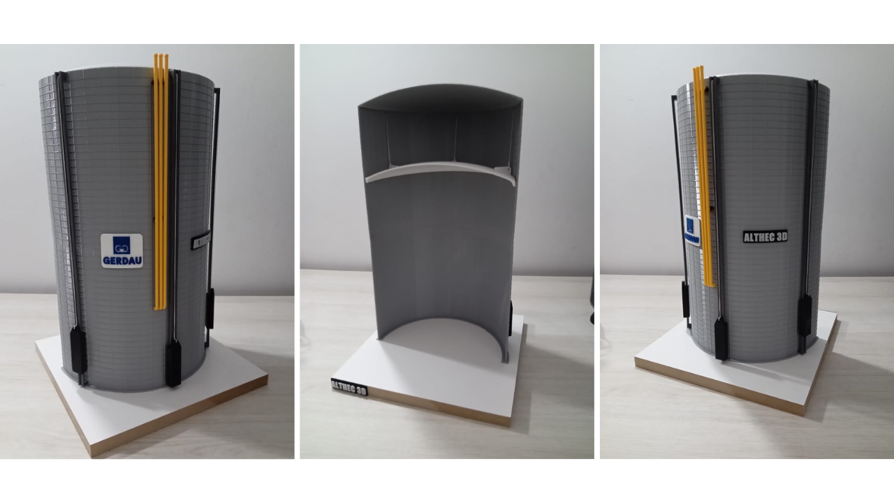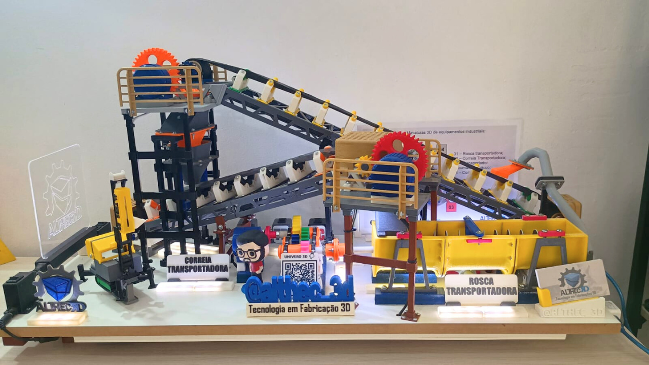 Desevolvemos uma maquete 3D, com equipamentos industriais com simulação de movimentos reais.